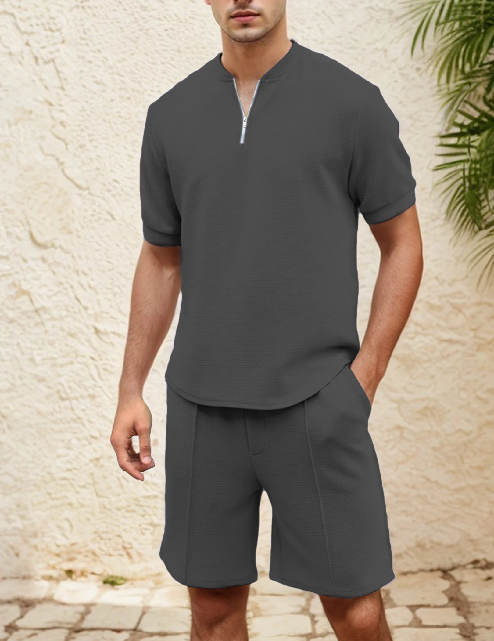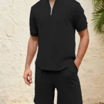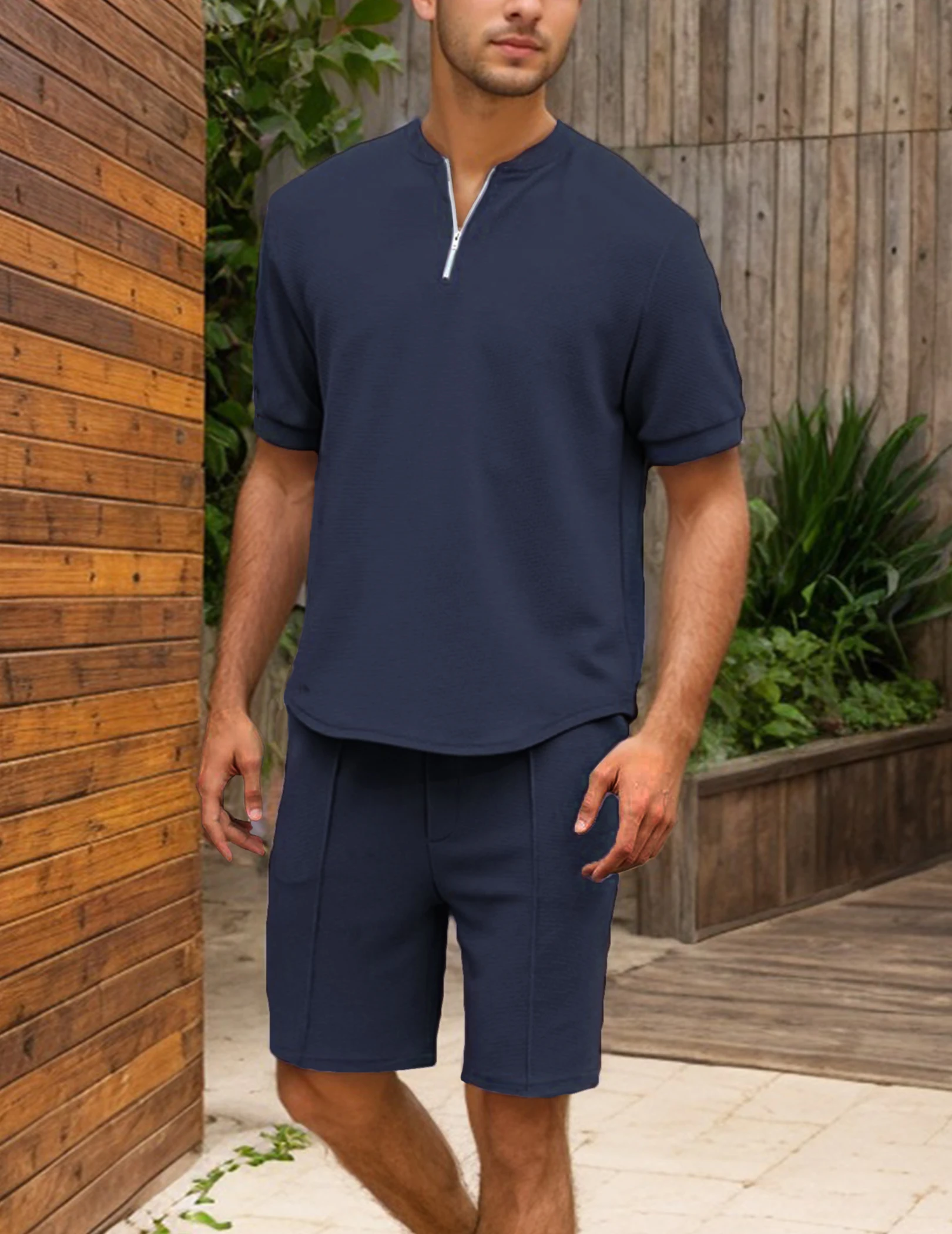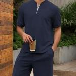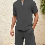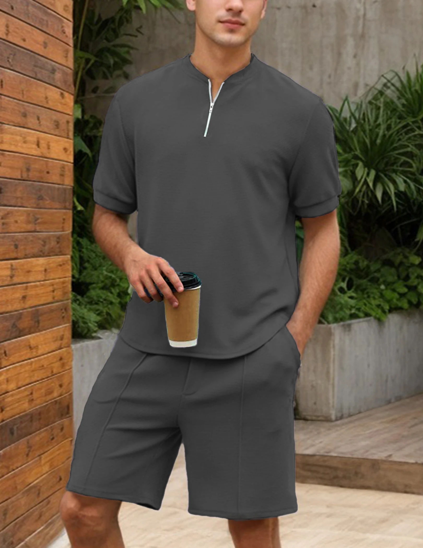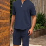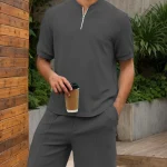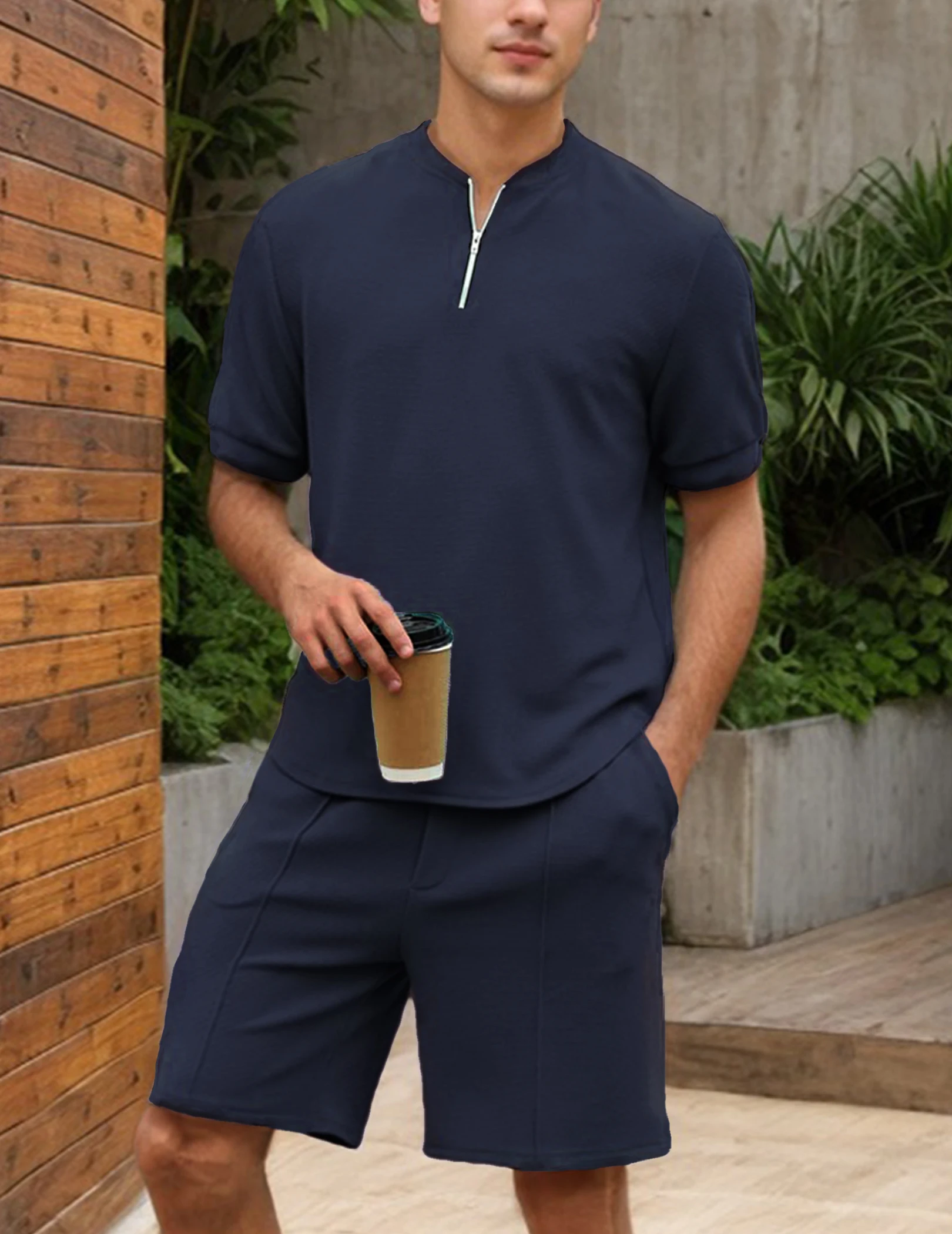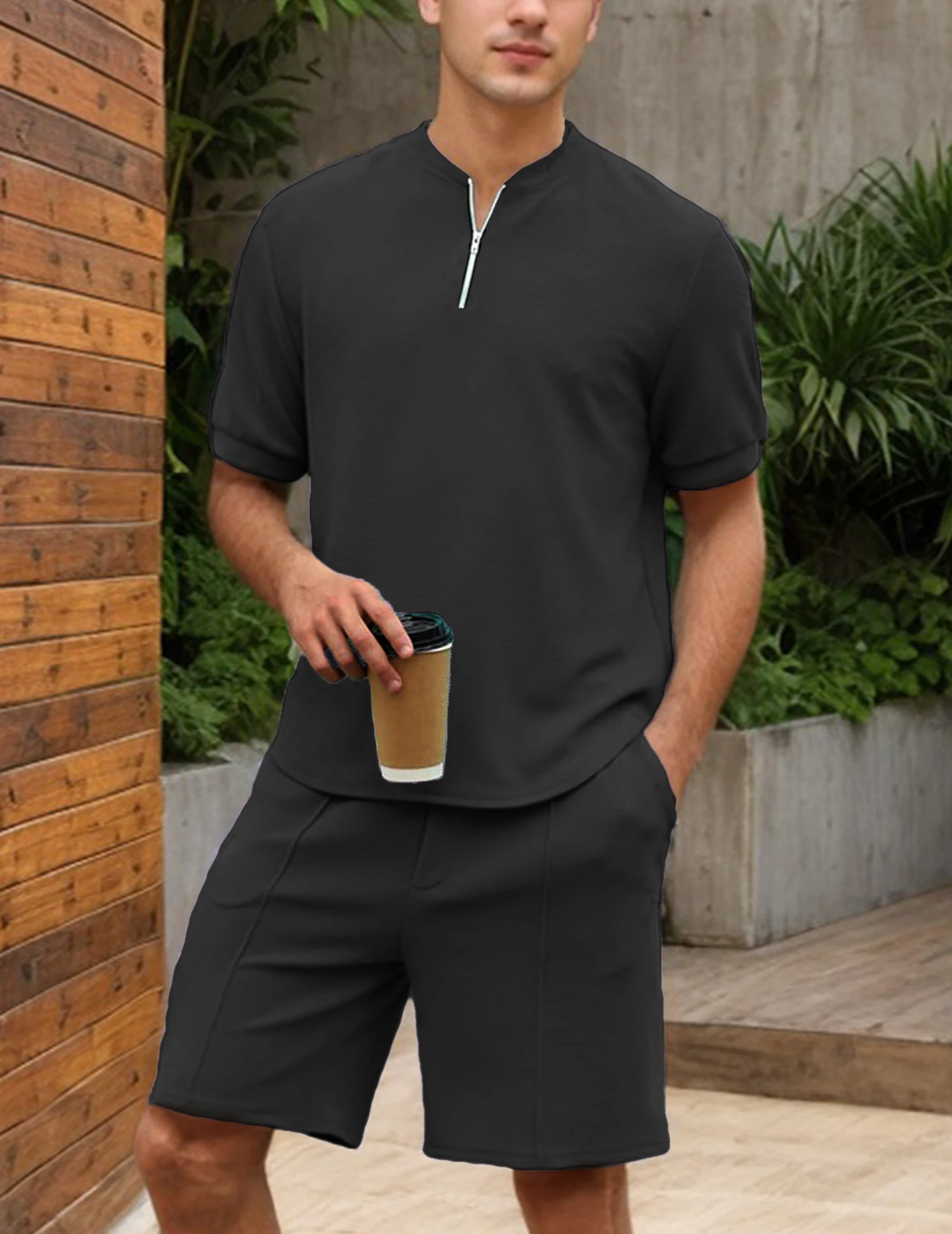 Men's Crew Neck Half-Zip Casual Two-Piece Set, Comfortable and Stylish, Perfect for Sports and Everyday Wear