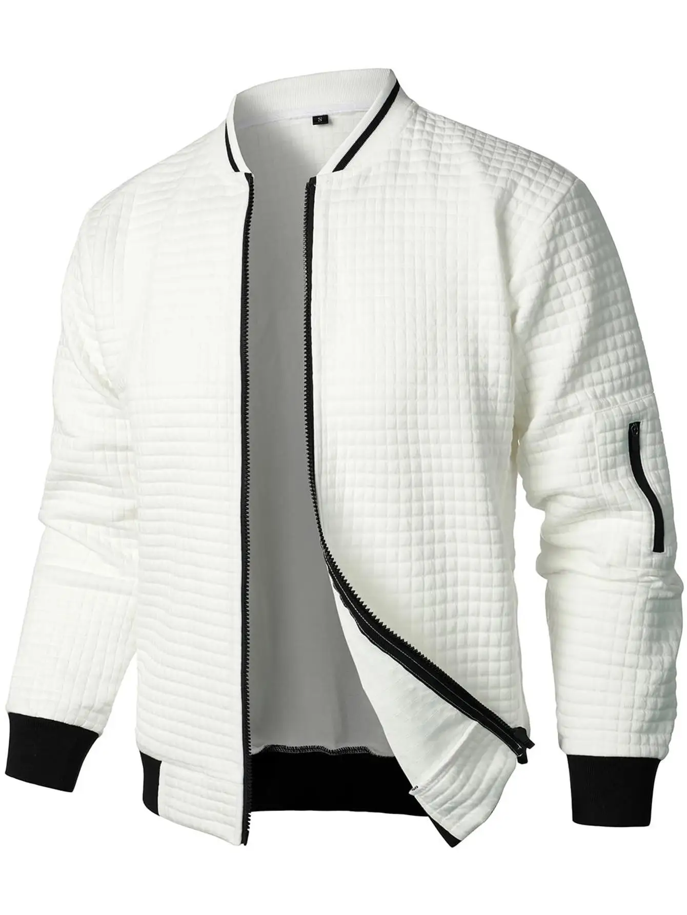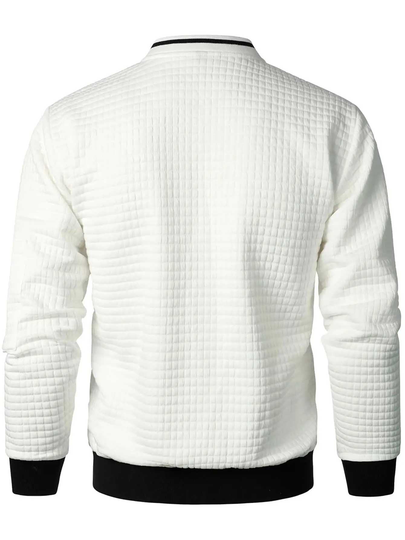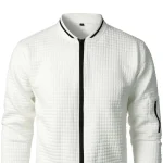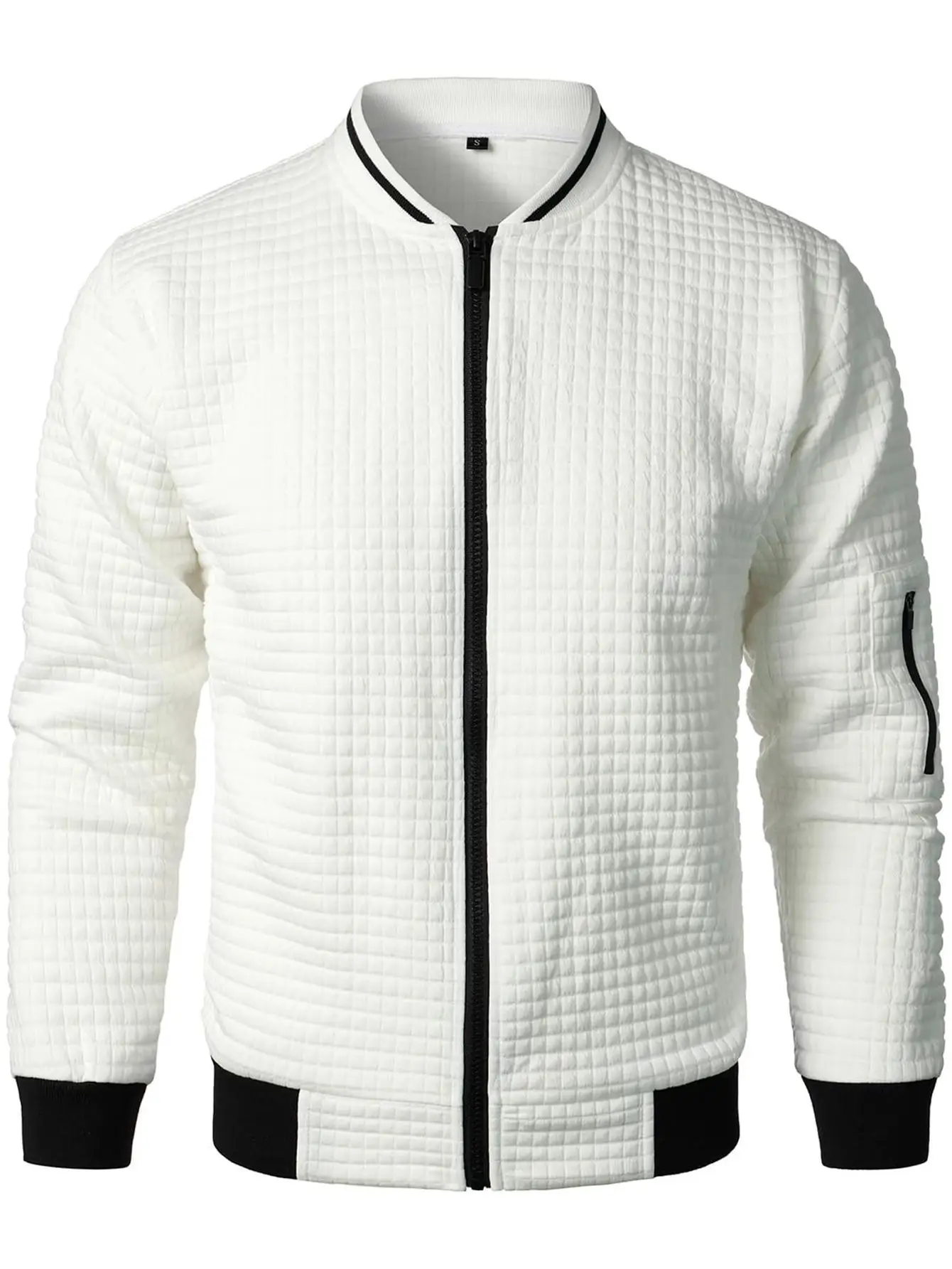 Men's Stand Collar Zip-Up Sweatshirt Jacket Fashion Plaid/Solid Color Cardigan Casual Versatile Sports Coat Autumn Winter Warm Outerwear