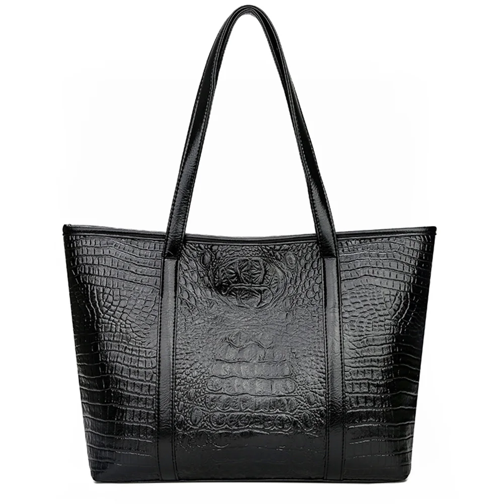 Tote Bag for Women Crocodile Print Shoulder Bag PU Leather with Inner Pocket Top Handle Bag with Zipper Handbag for Work Travel